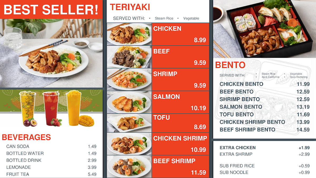 What makes it fun is how you can mix things up without overthinking it. One visit might call for teriyaki chicken with its glossy sweetness, while another might pull you toward a lighter combo with veggies or seafood. And because the dishes come out fast, it’s easy to swing by after running errands or when you’re just in the mood for something satisfying without any fuss.